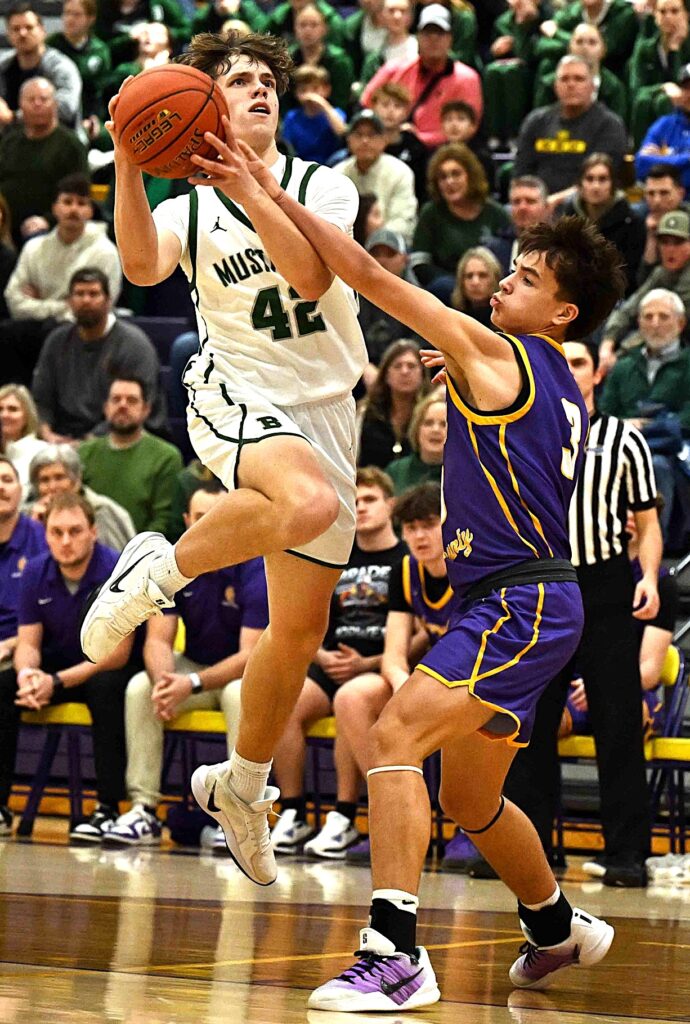 The Mustangs were hot out of the gate as Brady Bourke scored 9 points in the opening period, Drew Steffen 5, Carson Hesse 7, and Nick Cozzi 2. We led 23-16 at the quarter stop, and were only outscored 15-14 as we took a 37-31 lead to the locker room at halftime. The big challenge for those of us who have followed this team throughout this season have seen us squander leads in the second half, was to see if we could sustain our momentum through the first three minutes of the third quarter, and make a serious run down the stretch. The question was answered when we added 19 third quarter points to our sum total, besting the Camels 19-18, spotting us a 7 points advantage with 8 minutes to play in the game. A major 3-pointer by Beckett Kuntz turned back a Campbell County mini-run, and when Nick Cozzi hit all of his free-throws down the stretch while collecting a pair of 2-pointers, this one went in the win column, 71-58, amazing the many scribes on hand to cover the so-called “featured” girls game, sending them scrambling to write about this “Spoiler’s Alert” upset win by our now 4-7 Mustangs over the now 9-3 Camels.
